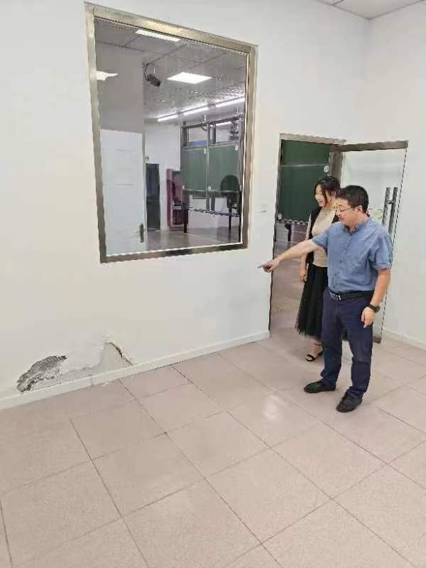 本次重点排查了用电用水安全问题。排查结果显示中心用房总体安全情况良好,在微格实训室排查出墙面潮湿,墙皮脱落问题,并及时报送给相关负责部门。