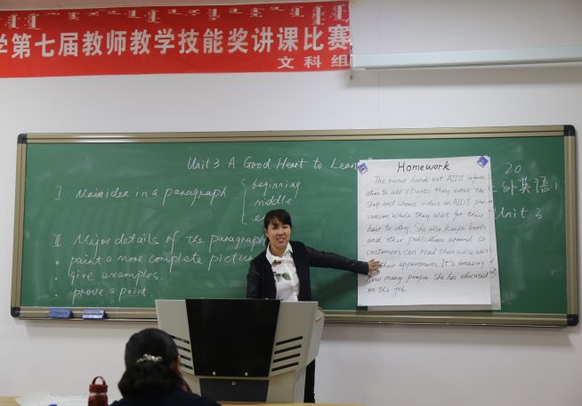 4月21日,由教师发展中心、工会联合举办的第七届教师教学技能奖评选活动现场讲授环节在西拉木伦校区新蒙医药楼举行。本次评比共有22个教学单位的53名教师参加,分文科、理科及蒙古语3组同时进行,其中文科组25名,理科组23名,蒙古语组5名。学校党委委员、副校长任军亲临评比现场指导工作,工会副主席王兴斌和部分教师到现场进行了观摩。